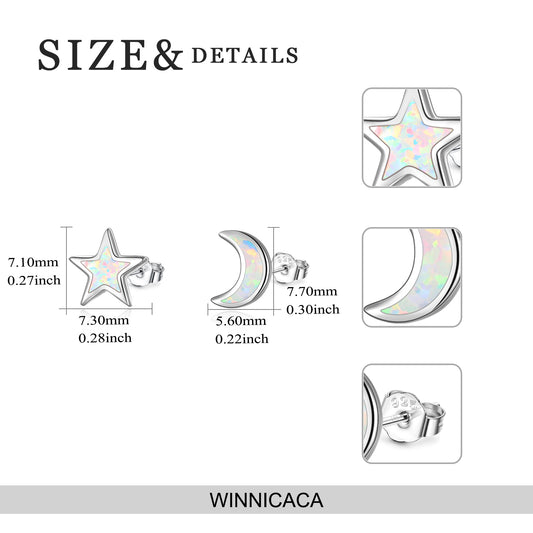 Star Moon Earrings 925 Sterling Silver Celestial Asymmetrical Earrings