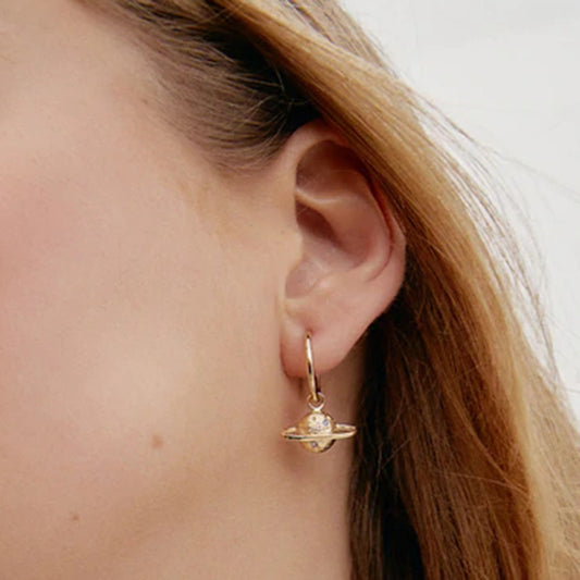 Silver Unique Celestial Planet Spaceship Alien Pendant Drop Earrings
