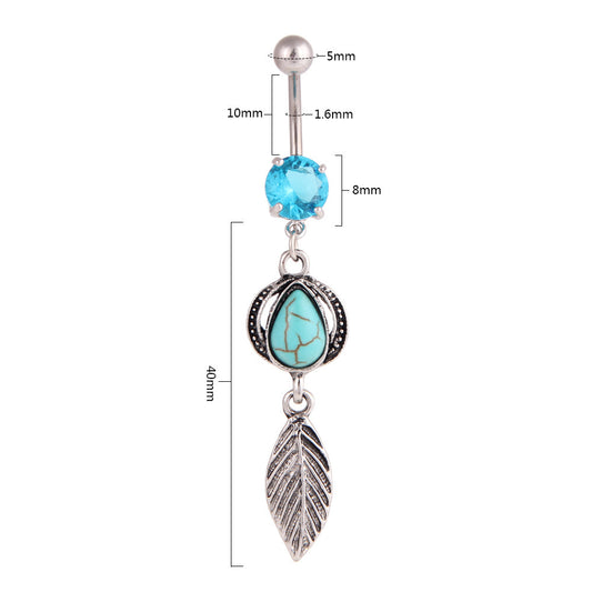 Turquoise Water Drop Leaves Belly Button Ring Stainless Steel Belly Button