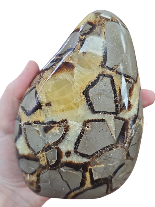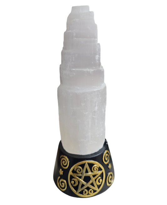 Selenite Palm Stone - Sacred Geometry - Flower Pattern