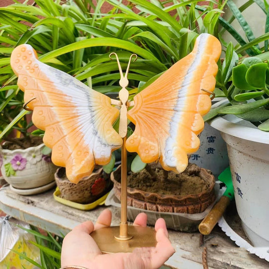 Natural Crystal Carved Orange Calcite Wings Butterfly on Stand