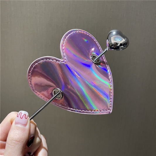 Overlock Heart Leather Sequin Glossy Heart Hairpin